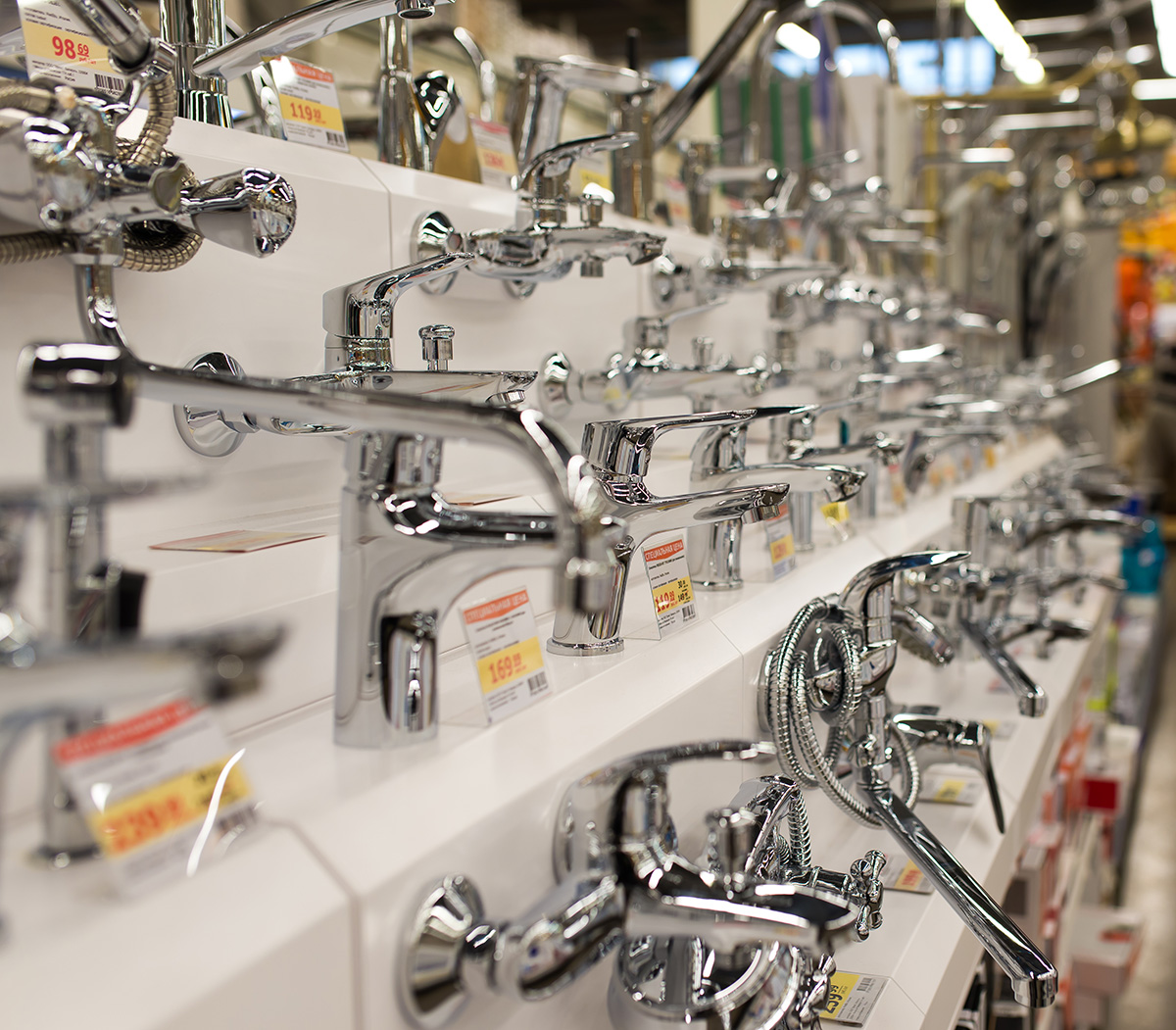 - Armatura wodociągowa: Zawory, krany, reduktory ciśnienia i inne elementy, kontrolujące przepływ wody w systemie.